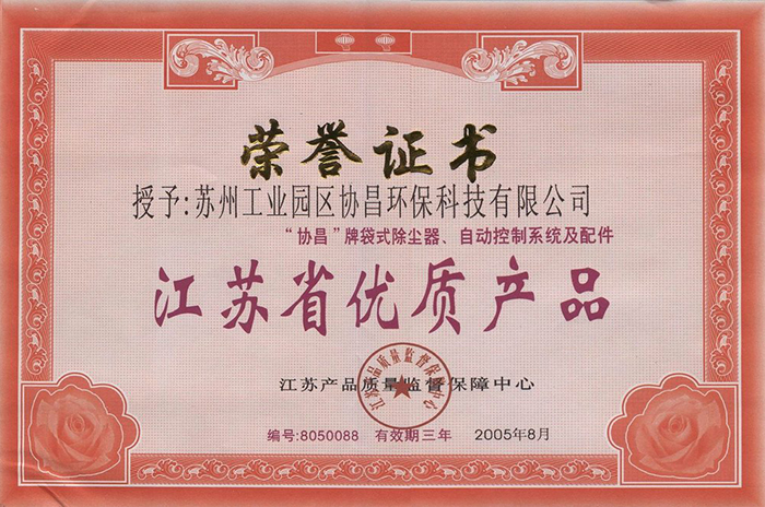 江苏省优秀产品荣誉证书